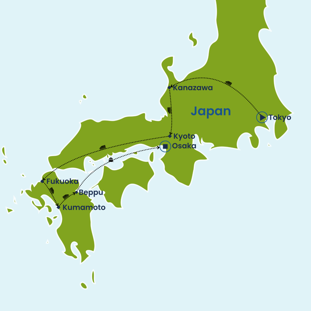 Embark on a captivating journey through Japan’s vibrant cities, historic sites, and breathtaking landscapes. Start in Tokyo with bustling streets, ancient temples, and scenic river cruises. Travel by bullet train to Kanazawa’s serene gardens and geisha districts, then Kyoto’s iconic shrines and bamboo groves. Explore Fukuoka and Kumamoto’s volcanic calderas and castles before relaxing in Beppu’s famous hot springs. Conclude in Osaka, visiting its historic castle and lively entertainment districts. With comfortable accommodations, expert guides, and smooth transfers, this trip offers an unforgettable blend of Japan’s rich heritage and modern charm.