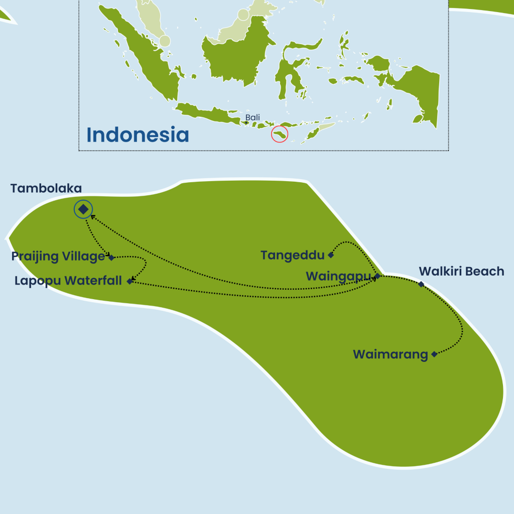 Uncover the raw beauty of Indonesia’s hidden gem on this 6-day Sumba journey. Begin in Tambolaka with traditional villages, ancient stone cemeteries, and the turquoise waters of Weekuri Lake before chasing sunsets at Mandorak Beach. Travel through lush landscapes to discover Praijing Village and the cascading Lapopu Waterfall, ending your day with sweeping views from Wairinding Hill. In East Sumba, marvel at the rolling hills of Tanarara, swim at Waimarang Waterfall, and watch the sun dip below Walakiri’s mangrove-framed shoreline. Trek to the enchanting Tanggedu Waterfall, relax at Puru Kambera’s savannah and beach, and immerse yourself in village traditions at Prailiu. With striking hills, hidden waterfalls, and vibrant culture, Sumba promises adventure, authenticity, and unforgettable memories.